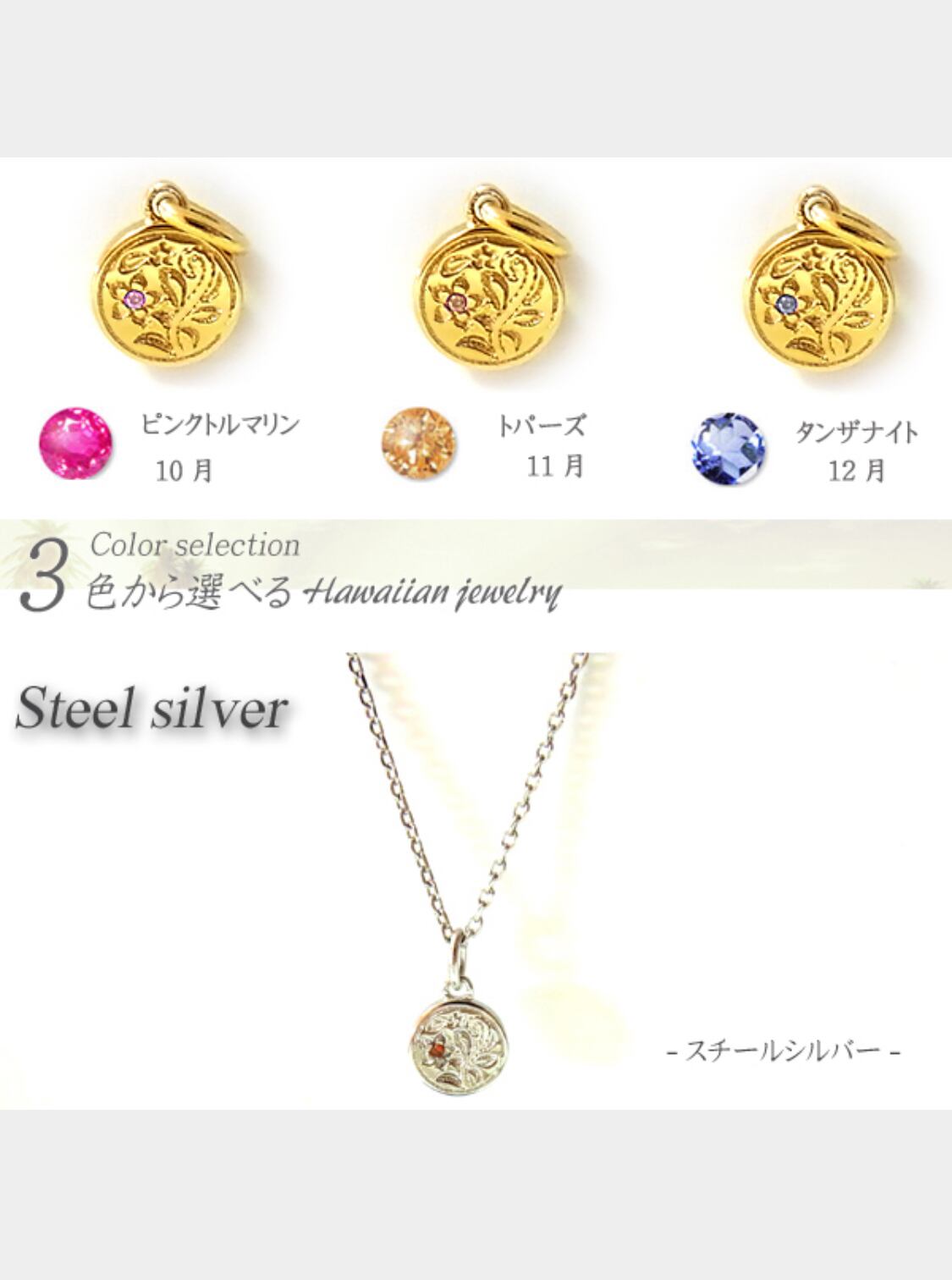 ハワイアンジュエリー ペンダント 誕生石付きネックレス
